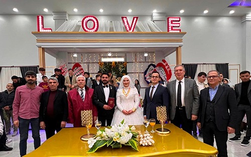 Düğüne gelen davetlileri kapıda karşılayan Çermik AK Parti İlçe Belediye Başkanı Şehmus Karamehmetoğlu, misafirleri masalarına kadar ağırlayarak güzel bir organizasyona imza attı. Çiftin mutlu gününde içten gülümsemeler ve aşk dolu bakışmalar, davetlileri de duygulandırdı.