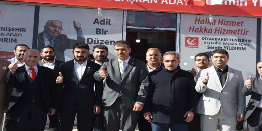 Yenişehir ilçesindeki seçim bürosunun açılışına,Yeniden Refah Partisi MKYK üyesi Şanlı Urfa İl Sorumlusu Dr.Sabih Dallı, Yeniden Refah Partisi Diyarbakır Büyükşehir Belediye Başkan Adayı Hikmet Kaplan, Yenişehir Belediye Başkan Adayı Semih Yıldırım, Dicle Belediye Başkan Adayı Halit Aydın, Kayapınar Yeniden Refah Partisi Belediye Başkan adayı Yahya Kılıç ,Yeniden Refah Partisi Hani Belediye Başkan Adayı Kadri Karaduman katıldı.